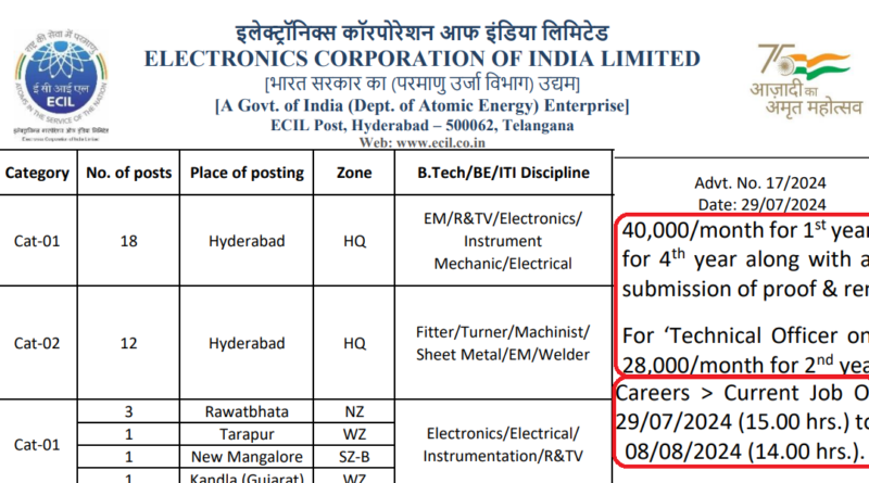 Read MoreECIL Technician Recruitment 2024: Electronics Corporation of India Limited is looking for dynamic, experienced and result oriented personnel for various