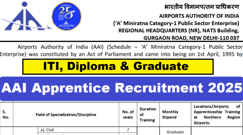 AAI Apprentice Recruitment 2025, ITI, Diploma & Graduate Pass Latest Vacancy 2025, 11/08/2025 Last Date