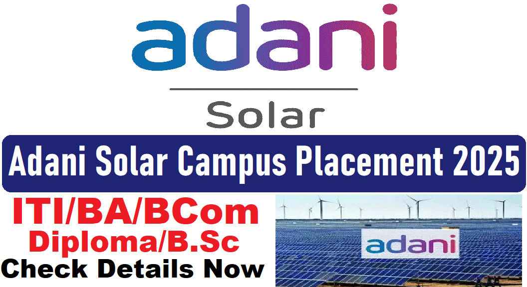 Adani Solar Campus Placement 2025, ITI/BA/B.Com/Diploma/B.sc Pass Latest Vacancy 2025