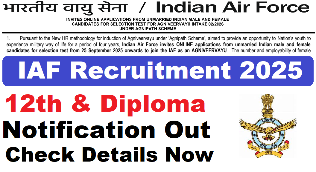 Air Force Agniveer Recruitment 2025, 12th & Diploma Pass Latest Vacancy 2025, 31/07/2025 Last Date