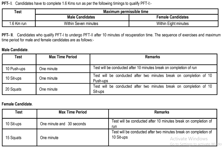 - Phase – II : Physical Fitness Test , Adaptability Test I & II.