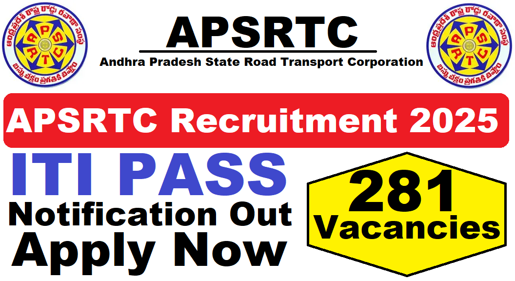 APSRTC Apprentice Recruitment 2025, 281 Posts, ITI Pass Latest Vacancy 2025, 04/10/2025 Last Date
