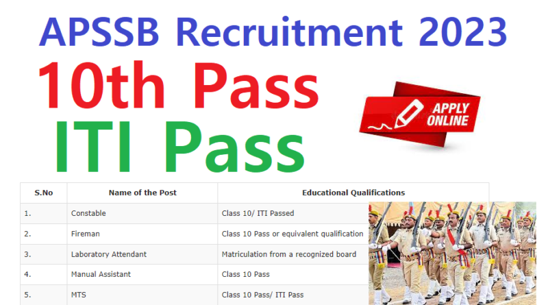 APSSB Recruitment 2023, 10th, ITI Latest Vacancy, Constable, Fireman, MTS Posts