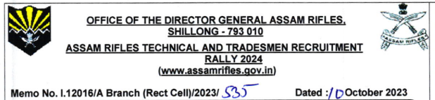 | Advt No. | Assam Rifles Technical and Tradesman Recruitment Rally 2024 |