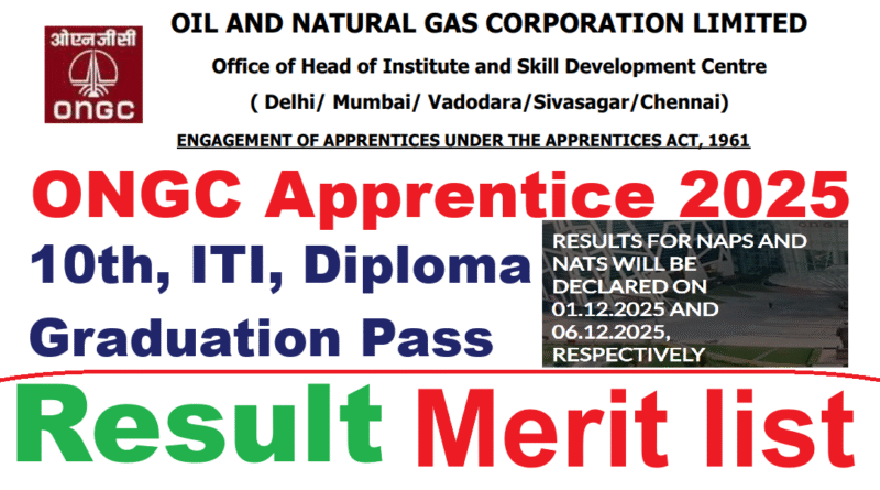 ONGC Apprentice 2025 Merit list Official date out: Oil and Natural Gas Corporation Limited (ONGC), which is India’s flagship energy