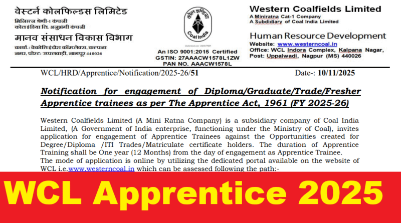 Read MoreWCL Apprentice Recruitment 2025: Western Coalfields Limited (A Mini Ratna Company) is a subsidiary company of Coal India Limited, (A