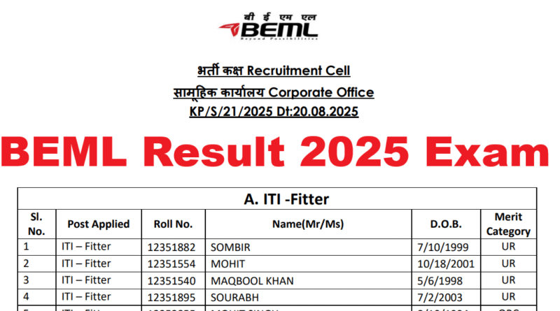 Read MoreBEML Recruitment 2025 Result Out: BEML Limited की ओर से Recruitment निकली थी जिसका Online form 12th Sep 2025 तक