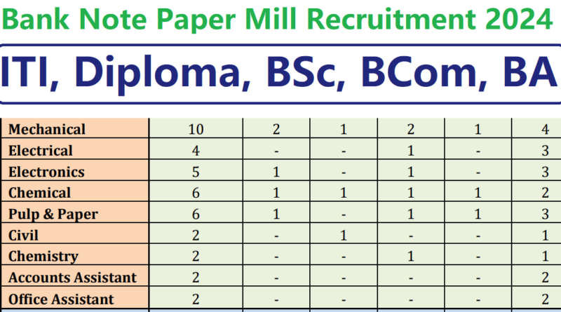 Bank Note Paper Mill Recruitment 2024, Non Executive, 30-06-2024 Last Date