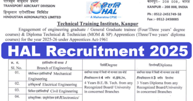 | Mechanical Discipline | Matric / SSLC / 10th Class Board Examination AND 2 years ITI Trade Certificate (NTC) or 3 years Diploma in Mechanical Engineering with 60% Marks aggregate | 18 – 28 years |