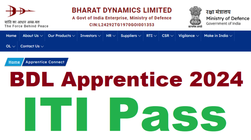 BDL Apprentice Recruitment 2024:Bharat Dynamics Limited (BDL), a Mini Ratna Category-1 Public Sector Enterprise, which was incorporated in the year 1970 under the Ministry of Defence (MoD), Government of India. A pioneer in the manufacture of Anti-Tank Guided Missiles, today BDL has evolved as a conglomerate, manufacturing ATGMs of later generations, Strategic Weapons, Launchers, Under Water Weapons, and Decoys & Test Equipments. BDL is engaged in manufacturing of Missile Systems and other sophisticated equipments vital for the Defense of the Country and is amongst a few industries in the world having capabilities to produce State of Art Guided Weapons Systems. The customers of the organization are all three wings of the Armed Forces viz., Indian Army, Indian Air Force & Indian Navy. Bharat Dynamics Limited, Bhanur Unit, Sangareddy (E06203600009) invites Online applications through www.apprenticeshipindia.gov.in portal from eligible ITI passed candidates for Apprenticeship Training under Apprenticeship Act 1961 in the following Trades for the year 2024-25. BDL Apprentice 2024 Online Form Apply before 11.11.2024.