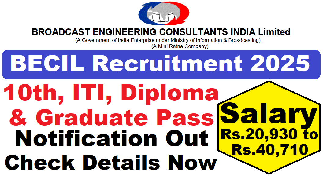 BECIL Recruitment 2025, 10th, ITI, Diploma & Graduate Pass Latest Vacancy 2025, 03/07/2025 Last Date