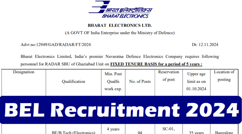 BEL Recruitment 2024, Bharat Electronics Latest vacancy 2024, 03/12/2024 last date
