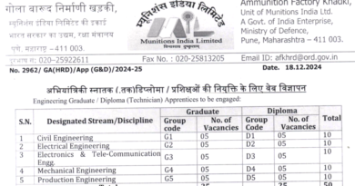 | Engineering Assistant Trainee (EAT) | 3 Years Diploma in Engineering (Electronics & Communication) from a Recognized Institution |