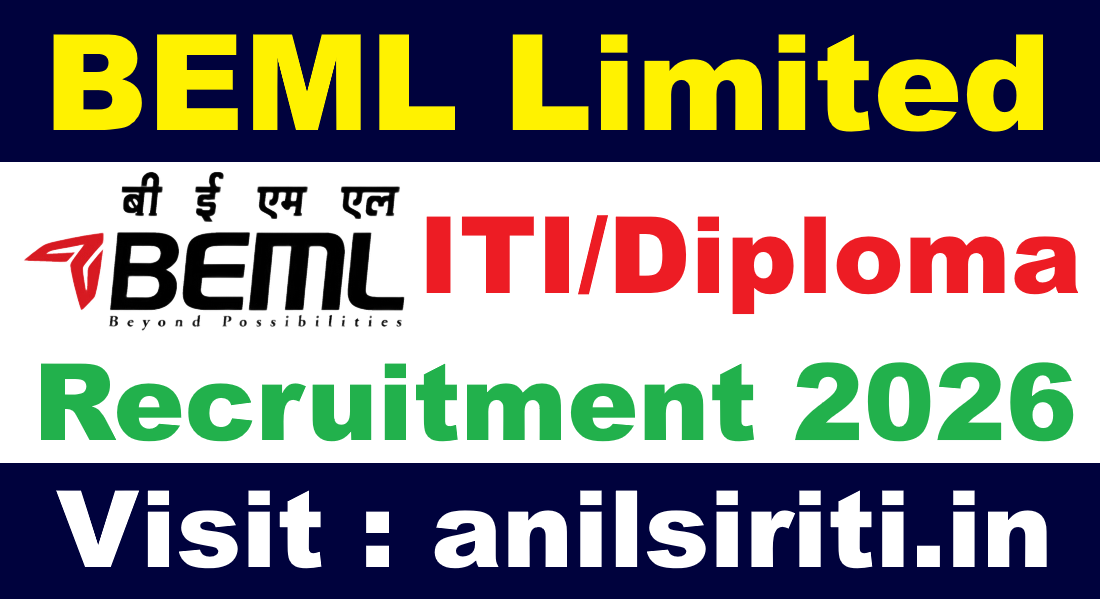 BEML ITI and Diploama Trainee Recruitment 2026 : BEML Limited एक Diversified Central Public Sector Company है, जो Innovation, Inclusion और Integration में अग्रणी है। BEML ने Product-design, Manufacturing & Servicing में In-house Capabilities विकसित की हैं और यह India’s Engineering Sector का Flag-bearer बन चुका है। यह Global Standard Products Supply करता है | Short Notification OUT! BEML Limited ने 27 March 2026 को ITI Trainees और Diploma Trainees की Recruitment का Notification जारी किया है। Advt Ref: KP/S/04/2026। Apply Link Coming Soon! Detailed Advertisement और Application Process bemlindia.in पर जल्द उपलब्ध होगी। Telegram Join करें — Link आते ही तुरंत Notification मिलेगी।