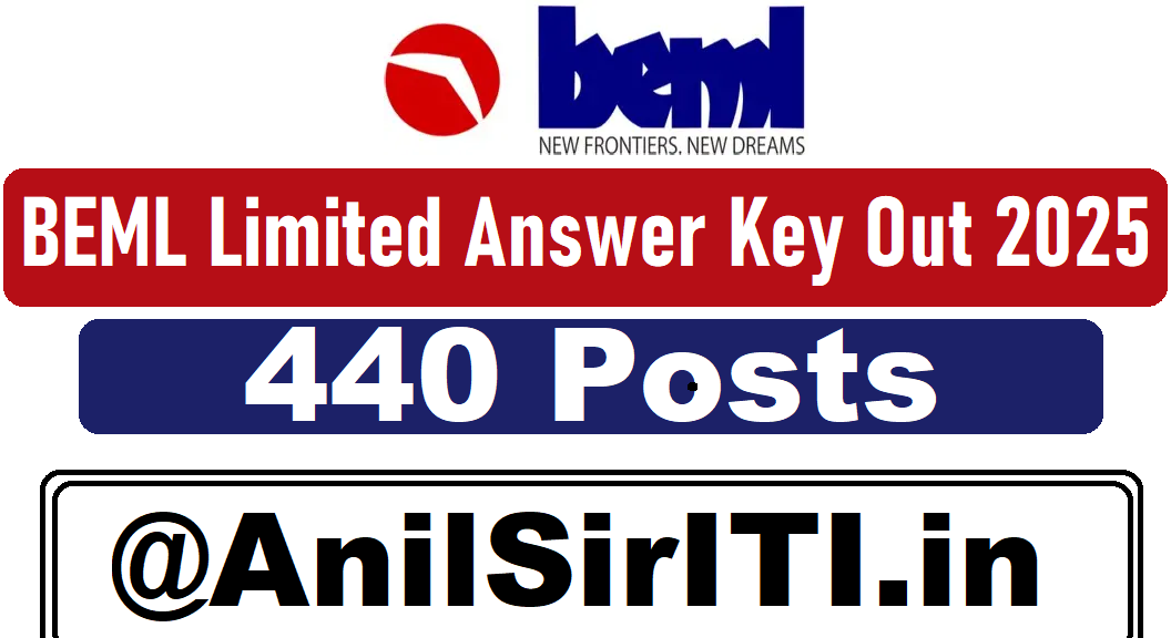 BEML Answer Key Out 2025 : BEML Limited की ओर से Recruitment निकली थी जिसका Online form 12th Sep 2025 तक भरा गया था | BEML Limited Recruitment CBT Exam मे उपस्थित हुये थे वे सभी Candidates Result एवं Answer Key का इंतज़ार कर रहे है जिसका Answer key 20 October 2025 तक जारी होने की संभावना है | BEML Limited Answer key 2025 Official link के जरिए देखा जायेगा | BEML Limited Answer Key 2025 BHEL official site से देखा जायेगा |Latest Update के लिए AnilSirITi Telegram Channel join करके रखे |