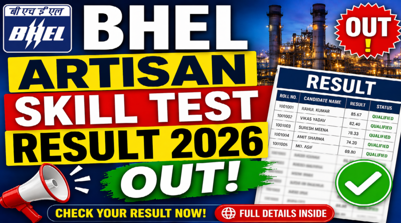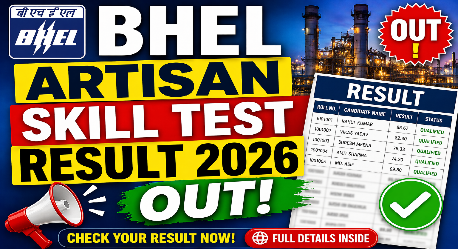 BHEL Artisan Skill Test Result 2026 Out! : BHEL (Bharat Heavy Electricals Limited) ने Artisan Recruitment Advt. No. 04/2025 के तहत Skill Test Results अपनी respective Unit Websites पर Upload कर दिए हैं। Result Rolling Basis पर Upload हो रहे हैं — यानी जैसे-जैसे अलग-अलग Trades और Units के Tests complete होते हैं, Results जारी होते जाएंगे। नीचे सभी Units के Direct Result Links दिए गए हैं।