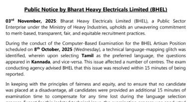 BHEL Artisans Admit Card 2025 : Bharat Heavy Electronics Limited (BHEL) की ओर से 515 Posts पर Recruitment निकली थी BHEL Artisan Recruitment 2025 Online form 12/09/2025 तक भरा गया था I |Exam Form भरने के बाद सभी Candidates Admit Card का इंतज़ार कर रहे थे जिसका Exam Date 08/10/2025 है जिसे Officially जारी कर दिया गया है और इसका Admit Card Exam Date के 10 दिन पहले जारी कर दिया जाएगा I Latest Update के लिए AnilSirITI Telegram Group Join जॉइन कर ले I
