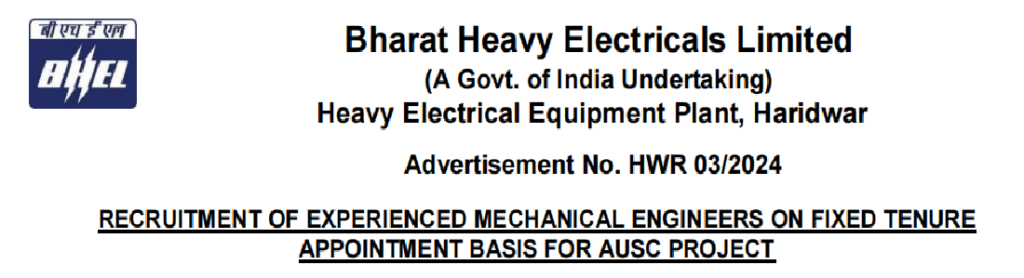 BHEL Recruitment Vacancy 2024