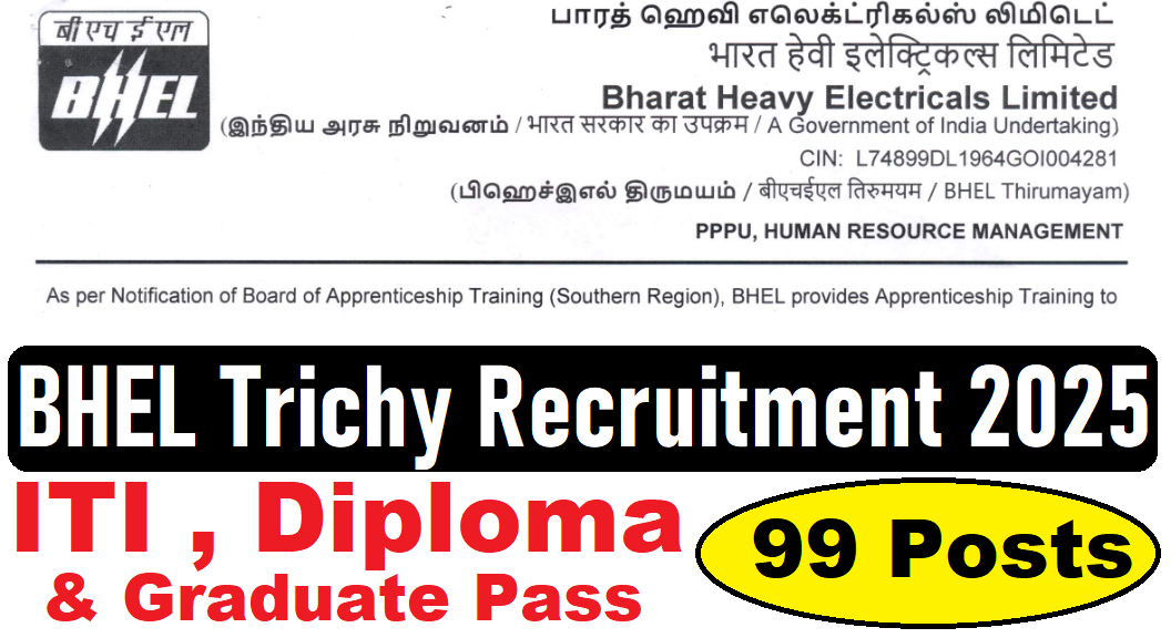BHEL Trichy Recruitment 2025, ITI , Diploma & Graduate Pass Latest Vacancy 2025, 99 Posts, 05/12/2025 Last Date