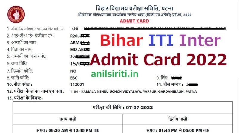 Bihar ITI Inter 2022 Admit card PDF Download https://secondary.biharboardonline.com/