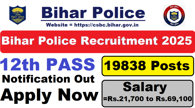 Bihar Police Recruitment 2025, 19838 Posts, 12th Pass Latest Vacancy 2025, 18/04/2025 Last Date