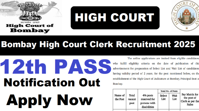 Bombay High Court Clerk Recruitment 2025, 12th Pass Latest Vacancy 2025, 05/02/2025 Last Date