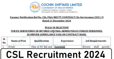 | Post Name | Draughtsman, Supervisor, Turner, Machinist, Driver (OG), Operator etc. |