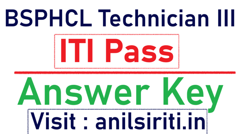 BSPHCL Technician III Answer Key 2025 Out, BSPHCL ITI Technician III Answer key Official Link