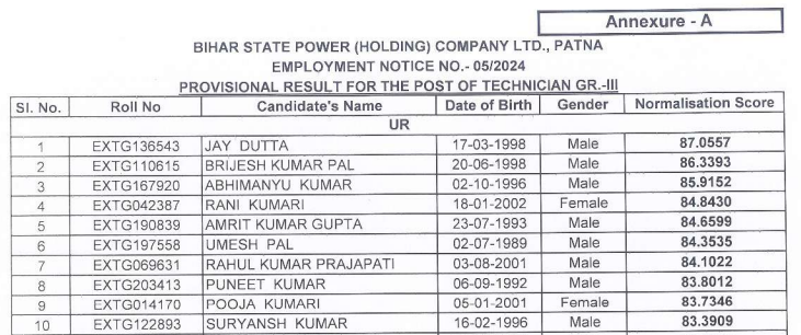 Based on normalized scores and information submitted in the online application, a Provisional Result for the post of Technician Gr.-III has been prepared (see Annexure – A).