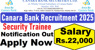 Canara Bank Apprentice Recruitment 2025, 3500 Posts, Graduate Apprentice Posts Latest Vacancy 2025, 12/10/2025 Last Date