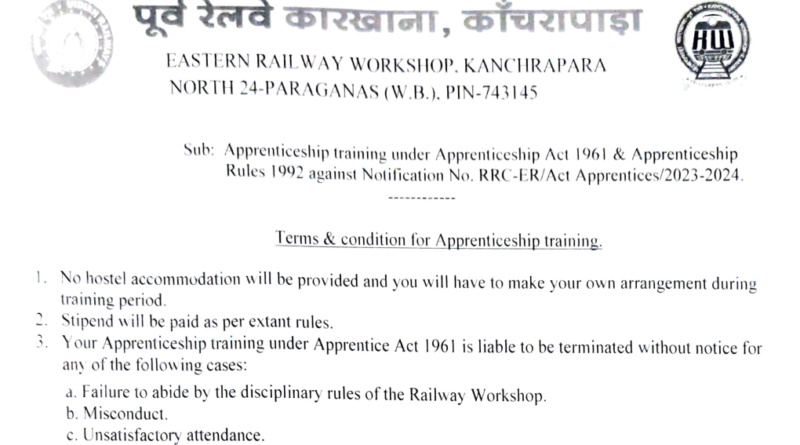 Read MoreEastern Railway Kanchrapara Apprentice 2024 Call letter out: Eastern Railway Kolkata की ओर से ITI Pass Candidates के लिए 3115