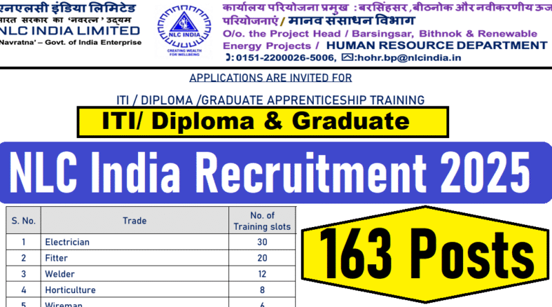 Read MoreNLC India Recruitment 2025 : NLC India Limited a “Navratna” की ओर से 163 Posts पर Recruitment निकली है जिसका