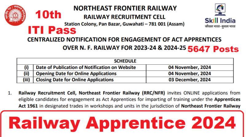 Read MoreNFR Apprentice Recruitment 2024: Northeast Frontier Railway (NFR) की तरफ से ITI Pass Candidates के लिए Railway Apprentice ,5647 Posts