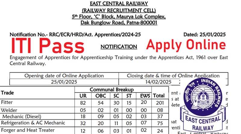 Read MoreEast Central Railway Apprentice 2025: ECR की ओर से ITI Pass various trades candidates के लिए Apprentice निकली है जिसका