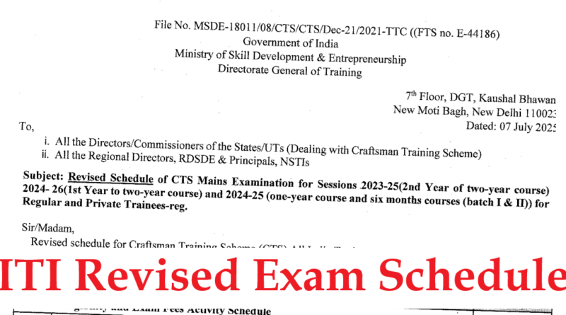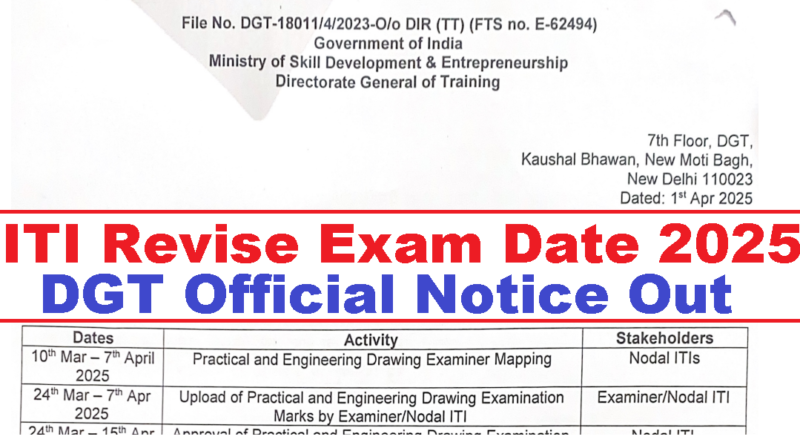 Read MoreDGT Breaking News : ITI July 2025 Revised Exam Schedule Out : NCVT ITI July Practical Exam 15 July 2025