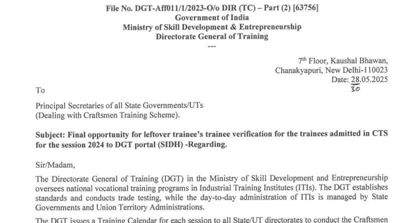 Read MoreITI NCVT DGT Breaking News 2025: NCVT में Admission लिए ITI Students के Trainee Verification का Final Opportunity दिया गया