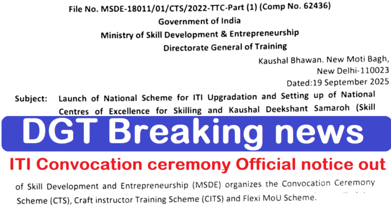 Read MoreDGT ITI Breaking News 2025 Official Notice Out: DGT ने ITI Result 2025 और ITI Answer key 2025 04-sep-2025 को