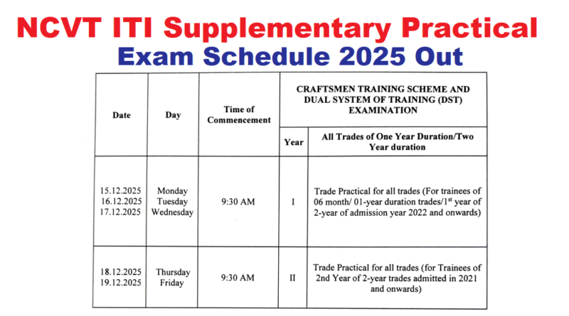 Read MoreNCVT ITI Practical Exam Schedule 2025 Out: Programme for All India Trade Test Practical Leftover/Supplementary Examination under Craftsmen Training Scheme