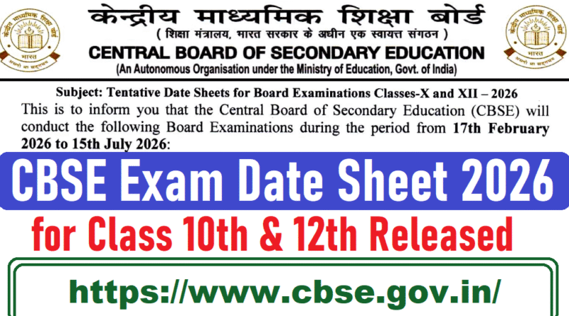 CBSE Exam Date Sheet 2026 for Class 10th & 12th Released, Exam Start from 17 February 2026