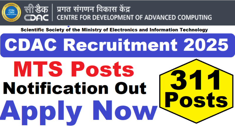 CDAC Recruitment 2025, 311 Posts, MTS Posts Latest Vacancy 2025, 20/06/2025 Last Date
