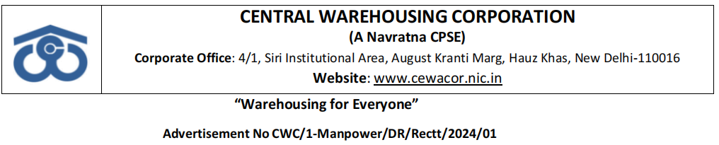 Central Warehousing Corporation Recruitment 2024, 12-01-2025 Last Date