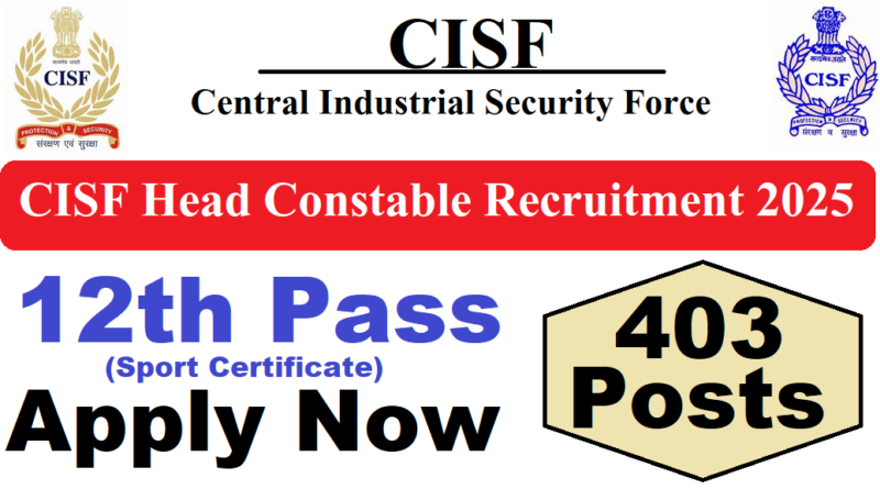 CISF Head Constable Recruitment 2025 : The Central Industrial Security Force (CISF) की ओर से 403 Posts पर Recruitment निकली है जिसका Online form 18/05/2025 से शुरू है | CISF Head Constable Recruitment 2025 Online form 06/06/2025 तक भरा जायेगा | 12th Pass + Sport Quota Pass in various candidates CISF Head Constable Recruitment 2025 online form भर सकता है | Interested and eligible candidates CISF Head Constable Recruitment 2025 form भर सकते हैं | CISF Head Constable Recruitment Full Notification निचे दिया गया हैI CISF Head Constable Recruitment Apply Link निचे दिया गया है I