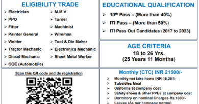 | Educational Qualification | ITI/Diploma/B.Tech |