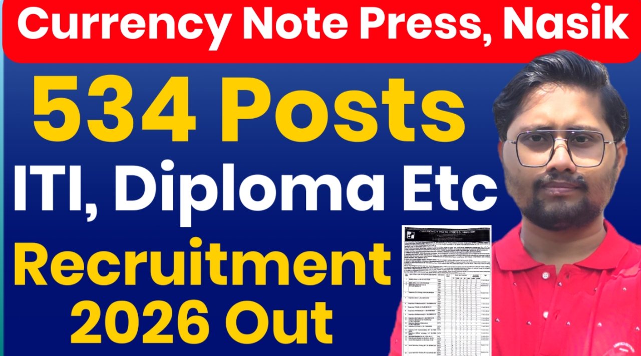 CNP Nashik SPMCIL Recruitment 2026: Security Printing and Minting Corporation of India Limited (SPMCIL) Recruitment 2026 — कुल 534 पद (सबसे ज्यादा JT Control: 227, JT Printing: 108) 🔥। ITI, Diploma, Graduation सभी के लिए मौका—ITI = Junior Technician. 📅 Apply: 20 April – 19 May 2026. पूरी डिटेल्स 20 April से वेबसाइट पर उपलब्ध होगी.