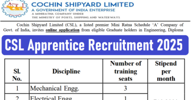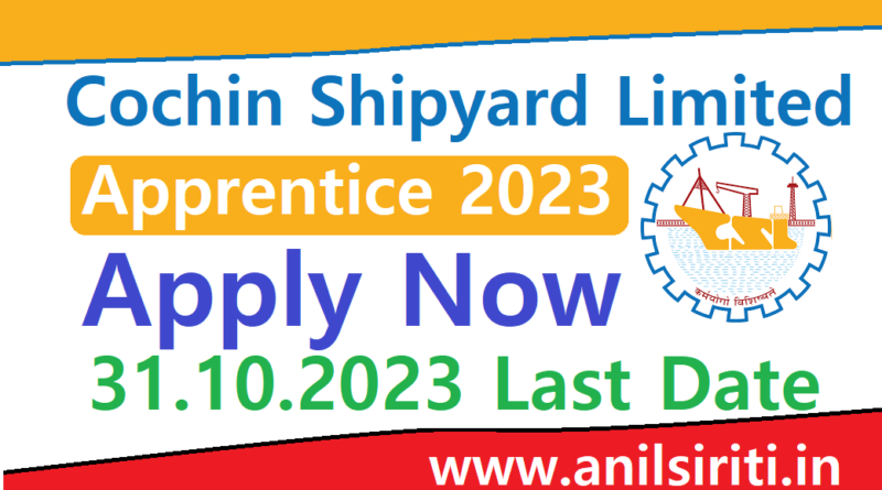 Cochin Shipyard Limited (CSL), a listed premier Mini Ratna Company of Govt. of India, invites Online application from eligible Graduate/Diploma holders in Engineering and Diploma holders in Commercial Practice, for undergoing one year apprenticeship training under the Apprentices (Amendment) Act 1973. CSL Apprentice 2023 Online form start from 11 Oct 2023. CSL Apprentice 2023 Online apply before 31 Oct 2023. Diploma Pass and Graduate Pass candidates apply CSL Apprentice 2023