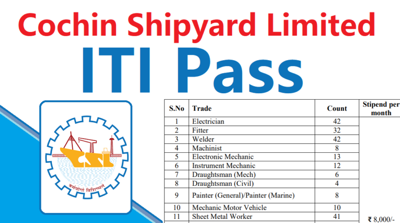 Cochin Shipyard Limited Apprentice Recruitment 2024, ITI Electrician, Fitter, Welder, Machinist etc