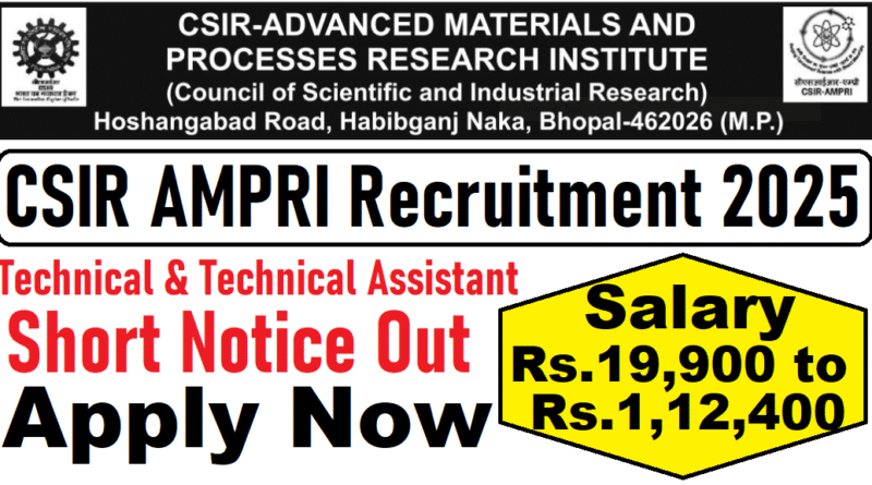 CSIR AMPRI Recruitment 2025, Technical & Technical Assistant Posts Latest Vacancy 2025, 04/01/2026 Last Date