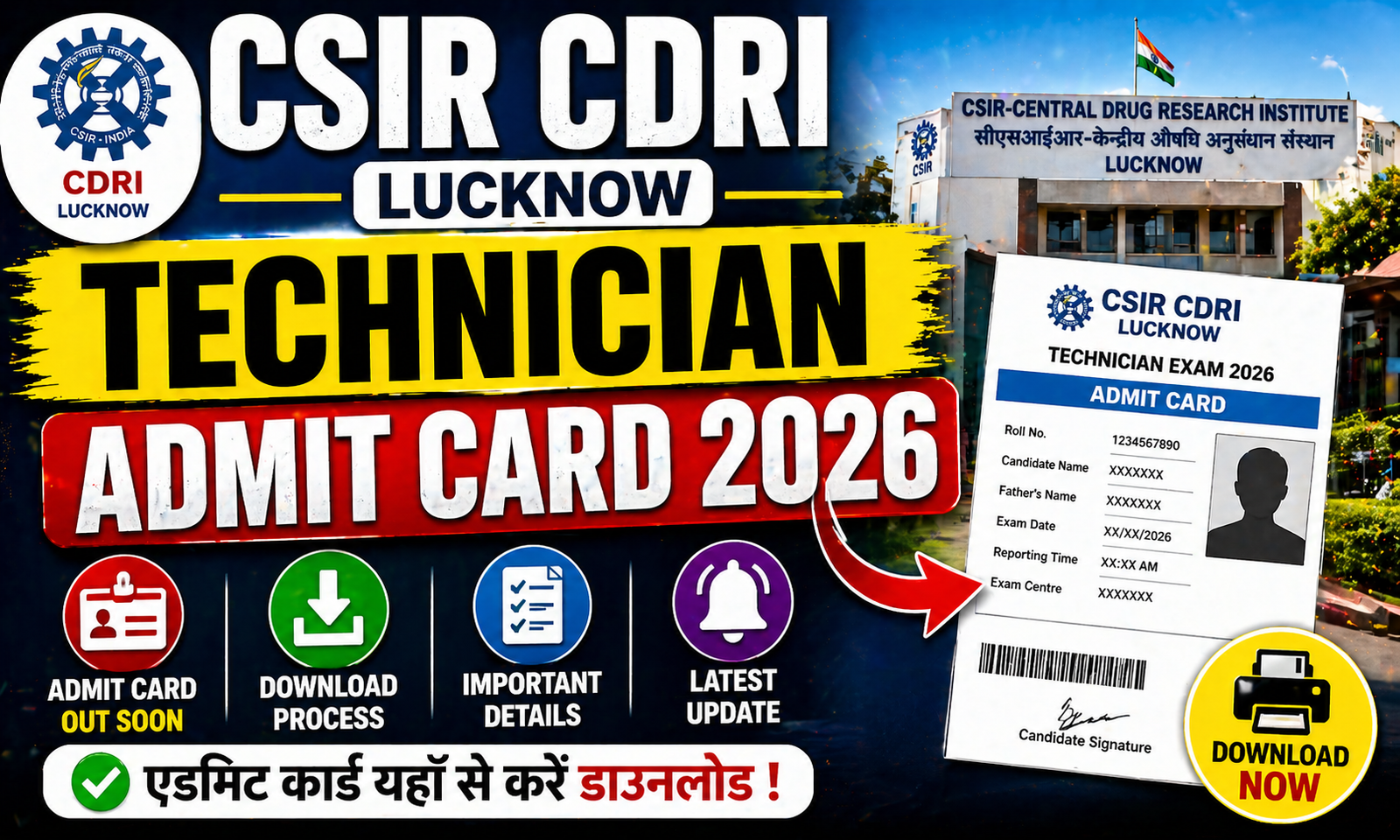 | Admit Card Download | 30 April 2026 से www.cdri.res.in पर |