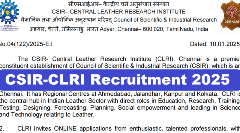 | Recruitment Organization | CSIR- Central Leather Research Institute (CLRI) |