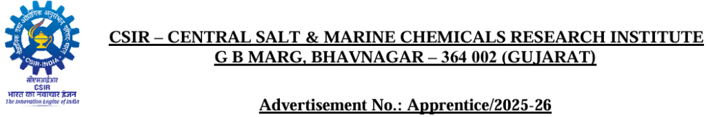 CSIR CSMCRI Apprentice Recruitment 2025, ITI, Diploma & Graduate Pass Latest Vacancy 2025, 02/12/2025 Last Date